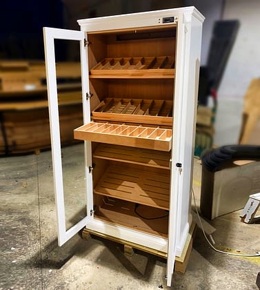 La circulación del aire, aunque sea suave, permite que todo el volumen interior trabaje como un único sistema, garantizando que la humedad sea la misma en cada punto del humidor. No se trata de generar corrientes, sino de evitar el estancamiento del aire.