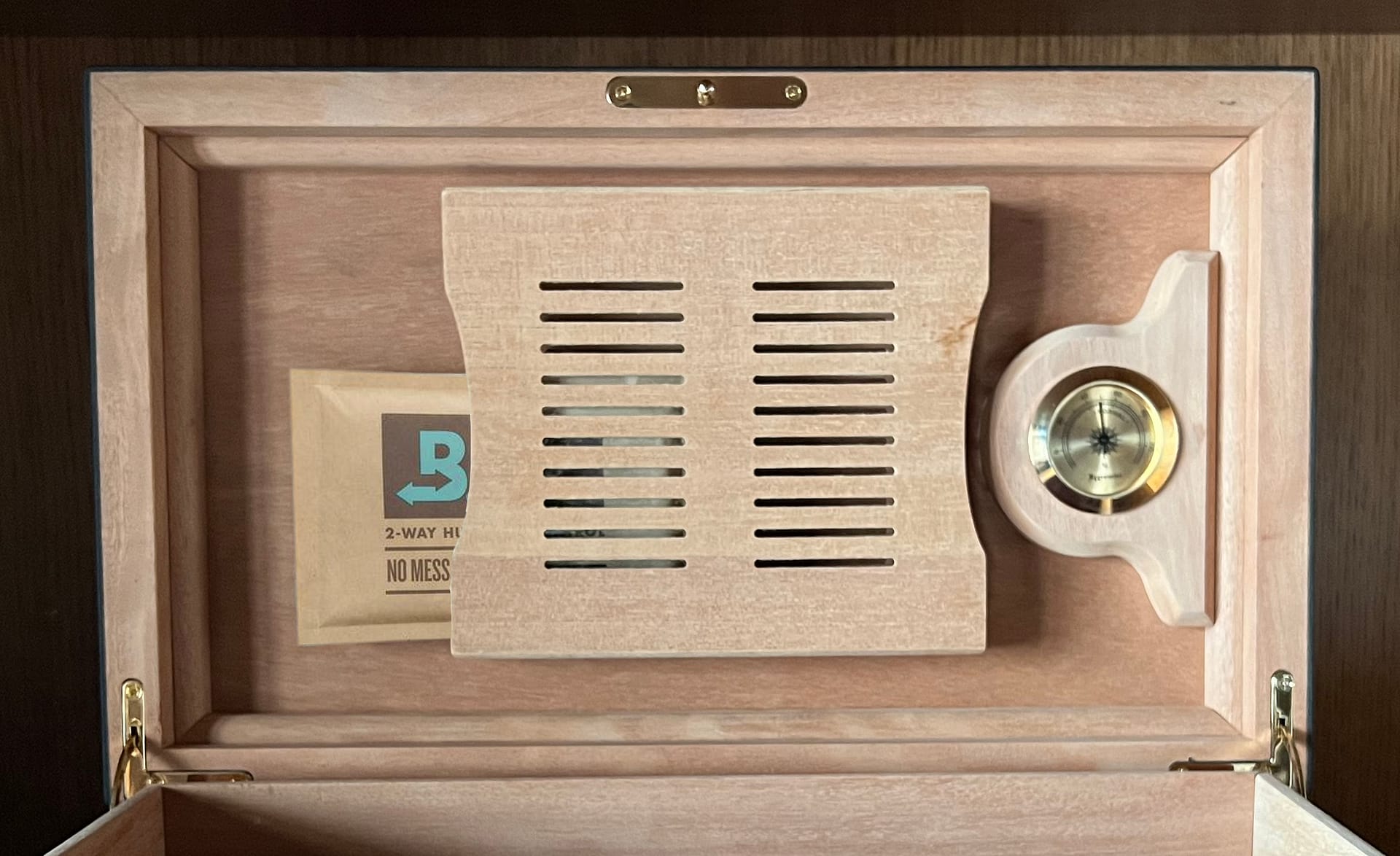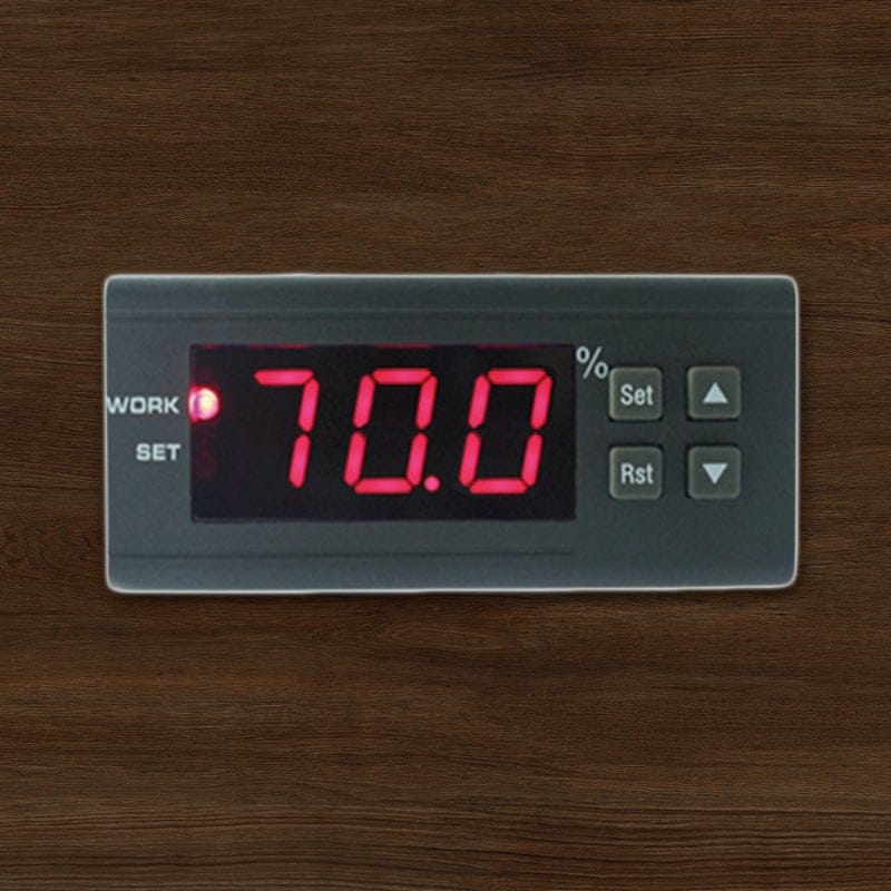 Además, los sistema de humidificación, como nuestro HR6, poseen un higrostato en el que se establece el nivel de humedad que se desea mantener en el humidor (aconsejable en torno al 70 %). De esta manera, el propio dispositivo va generando la humedad mediante un nebulizador y un ventilador que la expande. Cuando se alcanza el umbral fijado, el nebulizador se detiene, pero se vuelve a activar si se detecta una caída en la humedad.